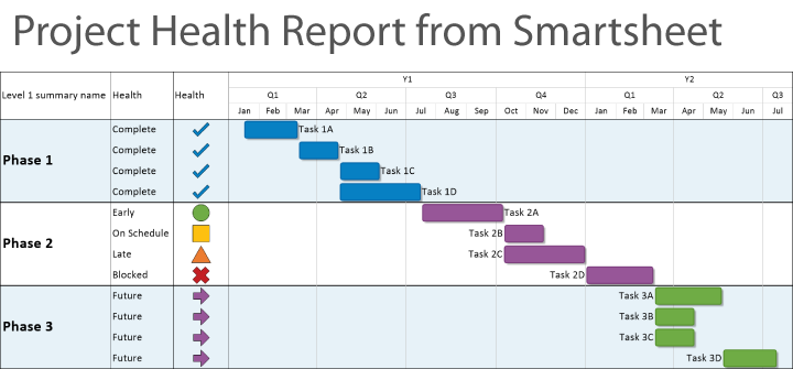条件格式根据项目计划中已有的数据,自动快速将颜色、形状和其他格式分配给时间线。无需浪费时间进行艰苦的手动格式化。 |